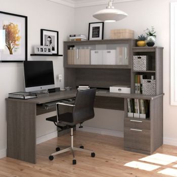 Sutton L Shaped Desk W Hutch 63 W By Bestar Officefurniture Com