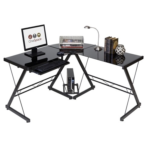 Glass L Shaped Computer Desk With Keyboard Tray Black Black Onespace Target